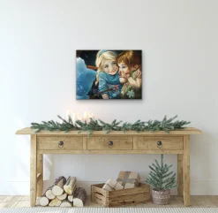 The bonds of sisterhood and the pure magic that a child’s joy and excitement can create, comes alive in this powerful moment from Disney’s blockbuster film Frozen, beautifully reimagined by artist Heather Edwards.